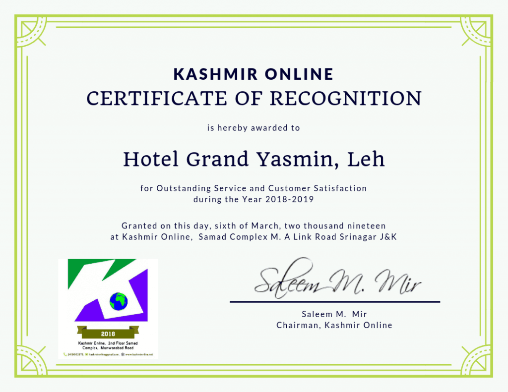 Awarded Best Hotel in Leh, Ladakh 🌟 Grand Yasmin Receives Prestigious Recognition! We are thrilled to announce that Grand Yasmin